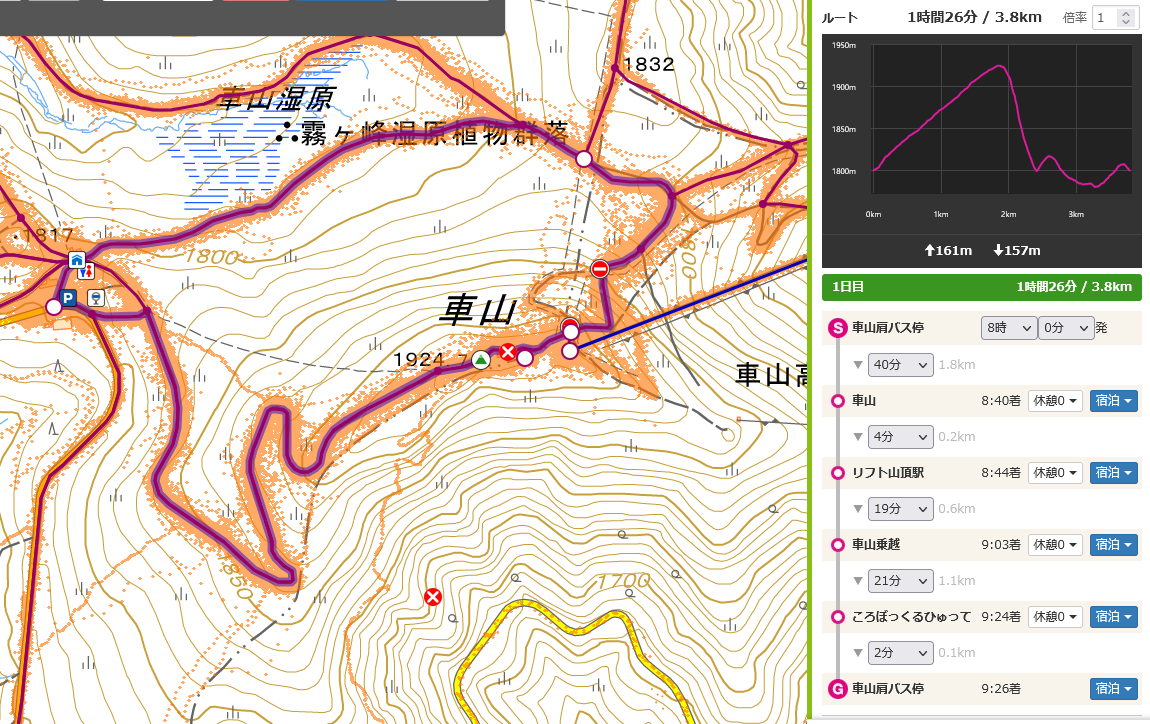 ルート:車山肩駐車場~▲車山~車山乗越~車山肩駐車場